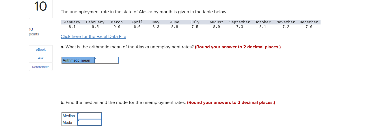 Solved 10 The Unemployment Rate In The State Of Alaska By Chegg Com